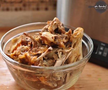 Bones and scraps from 1 baked chicken